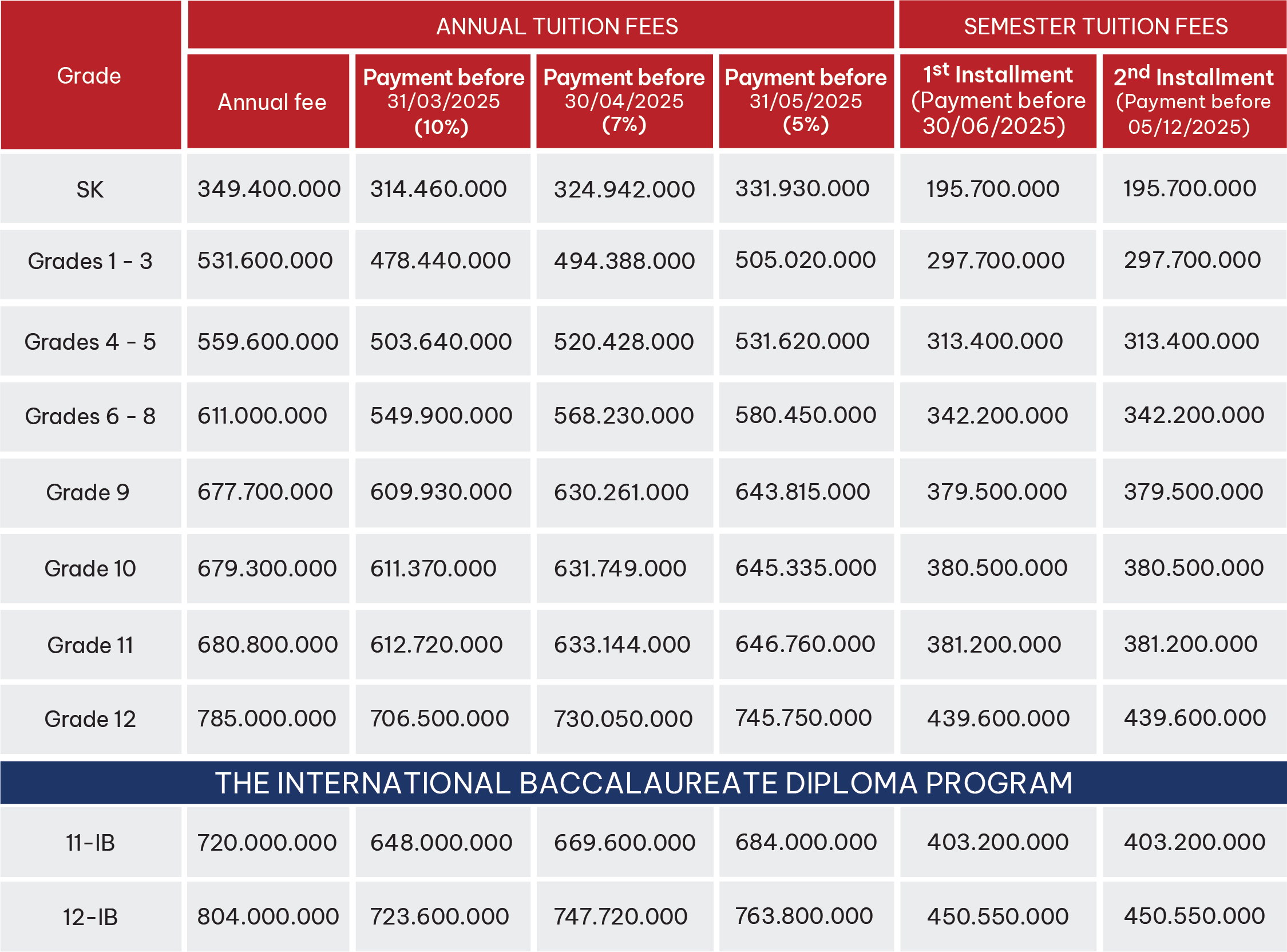 To facilitate transportation for students and shorten their time, our school bus system provides a wide range of pick-up/ drop-off points in every district to suit parents’ choices. The bus services are professionally provided by Nguyen Trinh Gia Company - our internal company whose management and driving staff are well-expertised in the transportation industry.