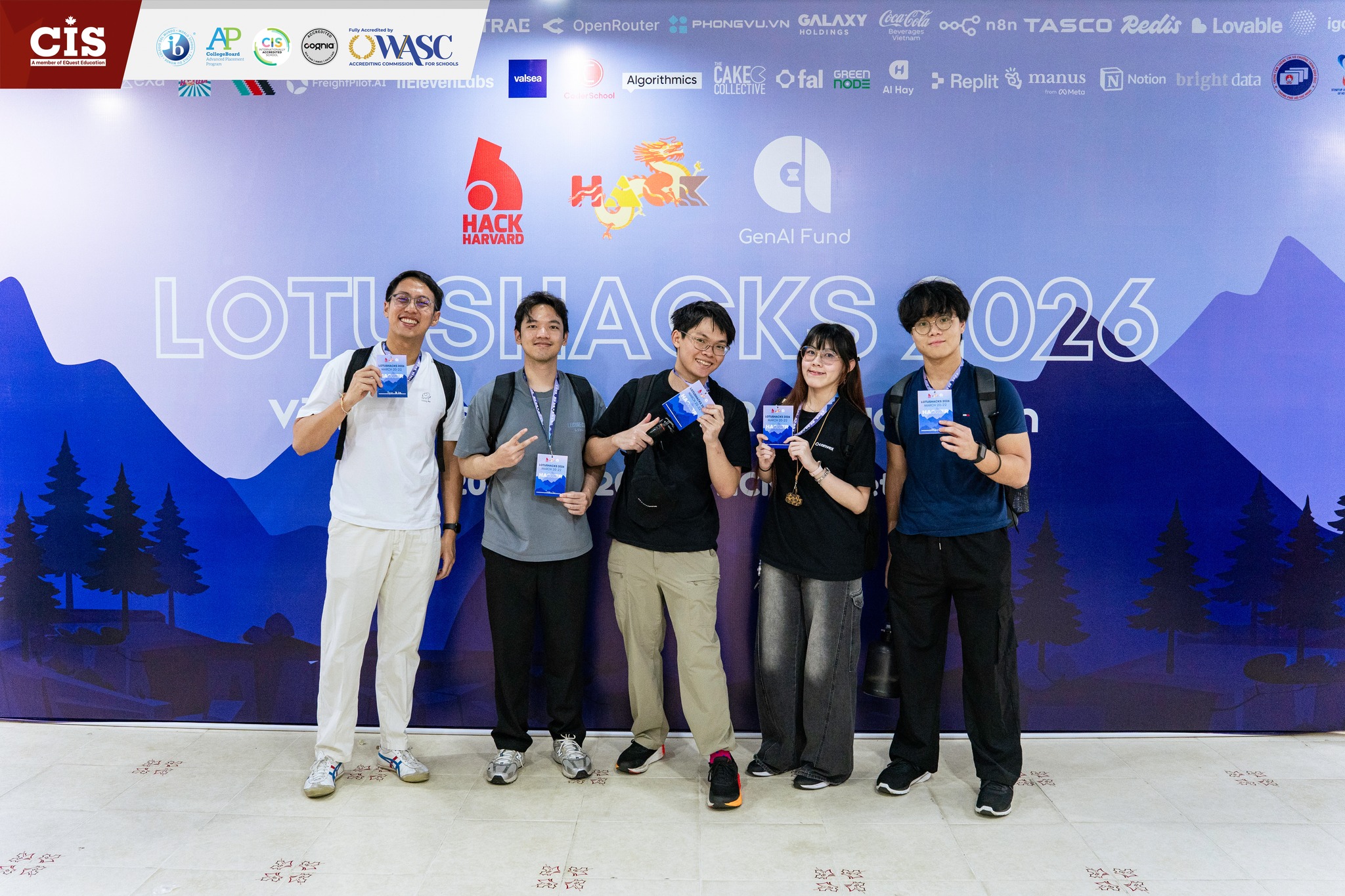 Đứng sau quy mô ấn tượng ấy là một đội ngũ học sinh trung học đầy bản lĩnh — trong đó có H. Bách (Sonic), học sinh Lớp 11 tại CIS và nhà sáng lập LotusHacks, cùng Q. Đan (Vanessa), học sinh Lớp 9 và đồng sáng lập. Từ một ý tưởng hình thành vào tháng 10/2025, LotusHacks đã phát triển thành một dự án hợp tác quốc tế, bao gồm cả mối quan hệ đối tác với HackHarvard.